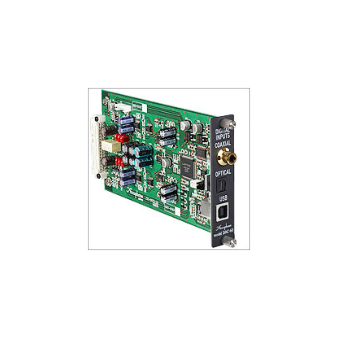 The DAC-60 is a digital input board that can input digital signals directly into amplifier units when installed in Accuphase preamplifiers and integrated amplifiers (listed below). Three input types are provided (USB, OPTICAL, COAXIAL) for connection to a broad range of digital devices. The D/A converter adopts the “2MDS+ (Multiple Delta Sigma) converter principle” with ES9016K2M (ESS Technologies) mounted in parallel to convert analog signals that remain extremely true to the original source sound. Born from cutting-edge audio technologies, the DAC-60 is an option board that provides truly high-quality and fully expressive performances.