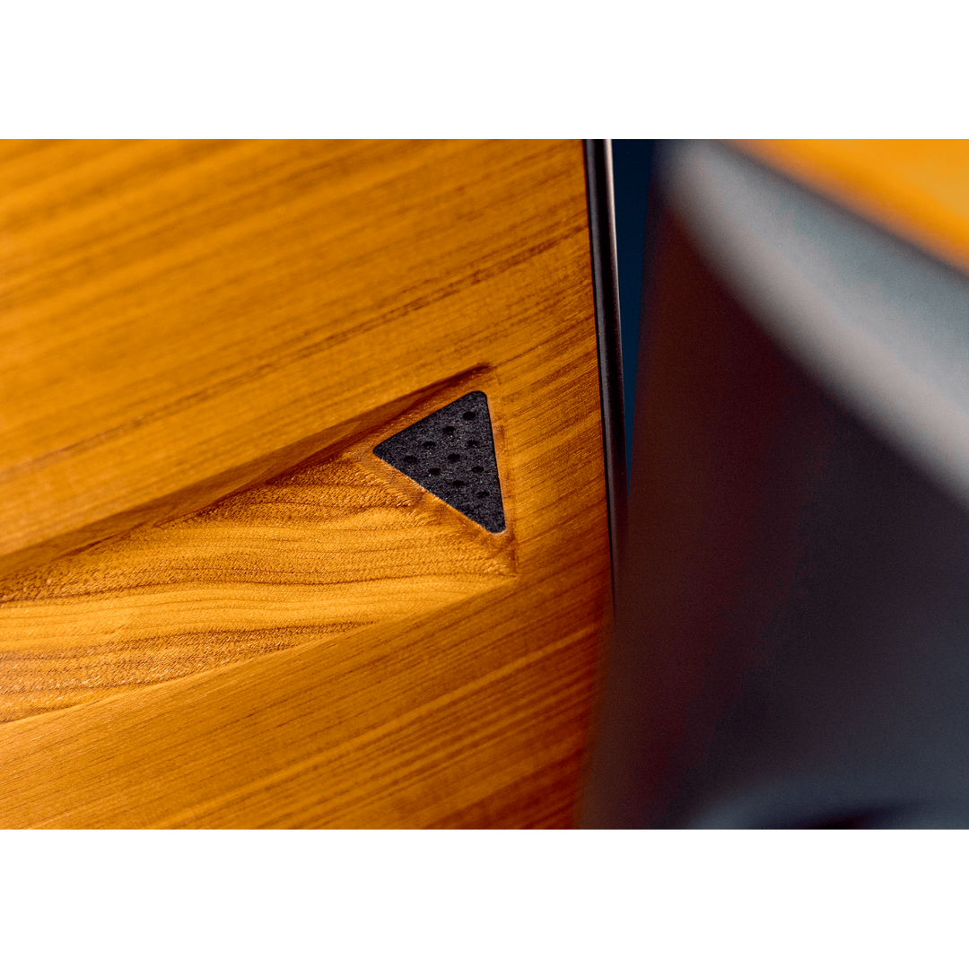 The efficiency of this closed ribbon tweeter amounts to an exceptional 94dB and operates from approximately 2.5 kHz upwards. The moving mass is extremely low at 0.01 grams. The totally concealed tweeter has the capacity to operate at an incredible speed, which is an absolute prerequisite to unlocking the most subtle and refined sound details of any kind of music. The enormous robustness of this tweeter allows it to handle extremely high transient peaks without any ear fatiguing breakups. No transformers are being used.