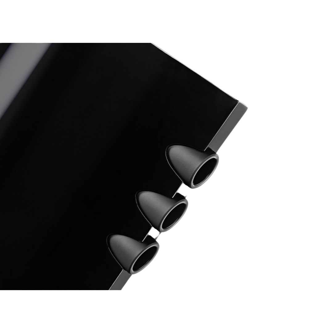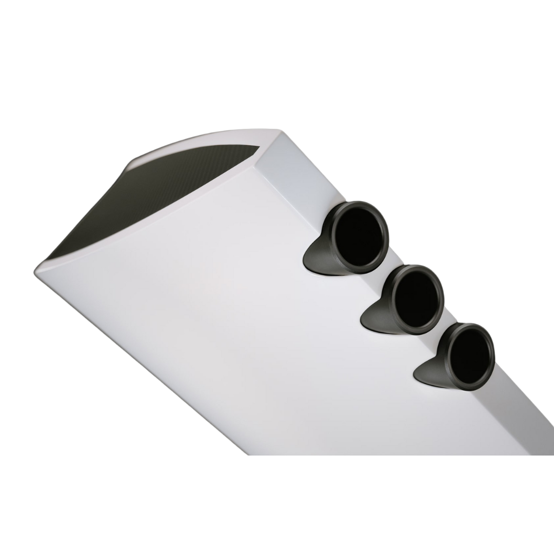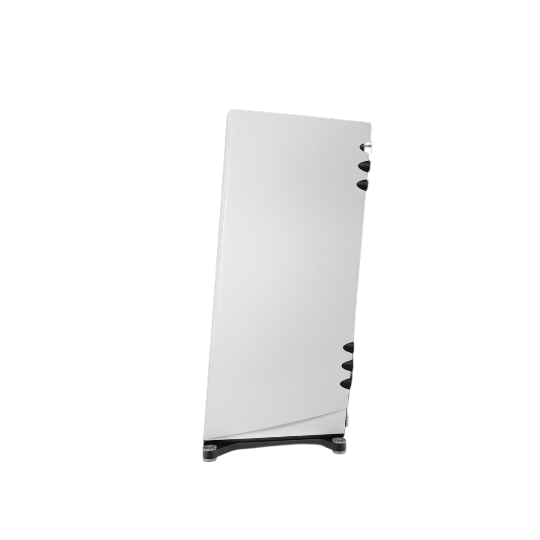 The surface of the cabinet is finished in black or white piano lacquer and reinforced with carbon fiber inserts. The cabinet is made of a heavily braced wood composite material that has the property of eliminating sound distortion. The material used for the cabinet also reduces mechanical influences, especially hysteresis. The sonic result is clearly audible. The X-series is equipped with bass reflex ports. The tweeter is vented to compensate for the air pressure that builds up. The bass section consists of tuned ports calibrated for musically relevant frequencies.