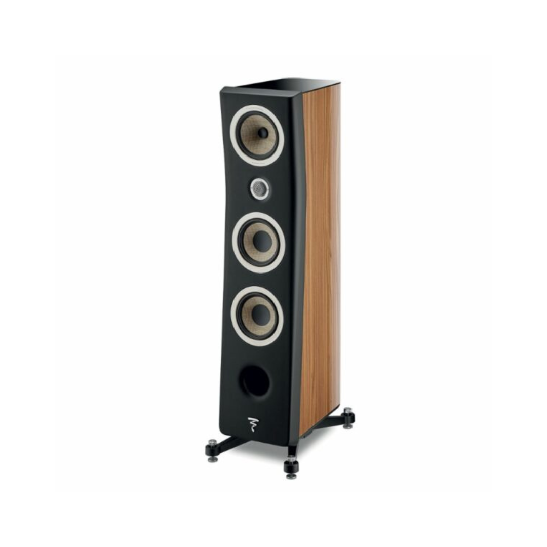 Thanks to Focus Time, all the loudspeakers are at the same distance from the ear. The modern character of the loudspeaker is underlined by a one-piece moulded wood rear shell, a Zamak base, a glass plate, discreet magnetic fabric holders…