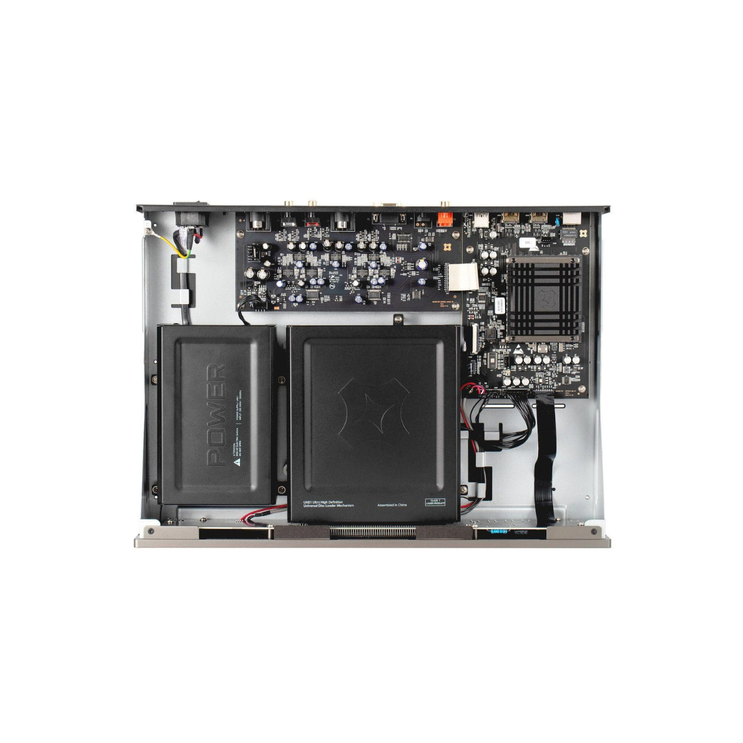Achieving exceptional audio and video performance requires high quality chassis construction and stability. The UDP800 provides a brushed aluminium front panel, in a solid highly rigid metal chassis to greatly improve audio and video performance. With a distinctive double layer chassis structure thickened to 1.6mm and a 3mm steel plate under its base, reducing vibration and generated noise during playback the UDP800 tips the scales at 8kgs!