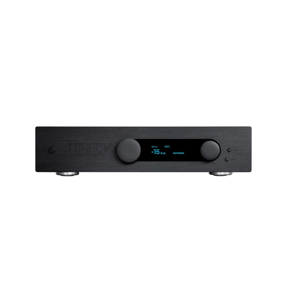 The Amethyst includes an 12 input preamplifier with built-in Speaker/Room Optimizer, Trinnov’s innovative HybriD Phono Preamp, a Network Renderer, a 24 bit/192kHz DA Converter and a 2-way intelligent, active crossover engine.